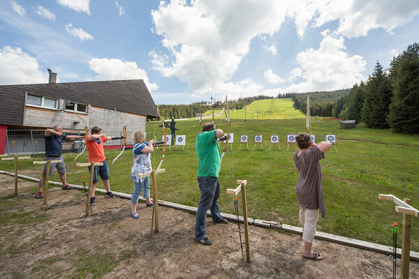 Ganz im Westen auf den im Bebauungsplan vorgesehnen Flächen für "Spiel und Sportaktivitäten" wird in den Sommermonaten gegen Voranmeldung Bogenschießen von blackforestaction.de angeboten.
