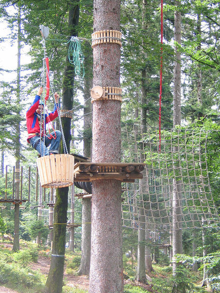 Auf ca. 3,5 ha Fläche kann in sieben Parcours mit unterschiedlichem Schwierigkeitsgrad in 3 bis 14 m Höhe von Baum zu Baum geklettert werden.