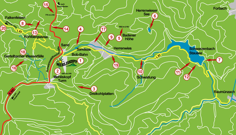 Mehliskopf - Parkplatz - Hotel Schwarzenbach (ca. 7,5 km)