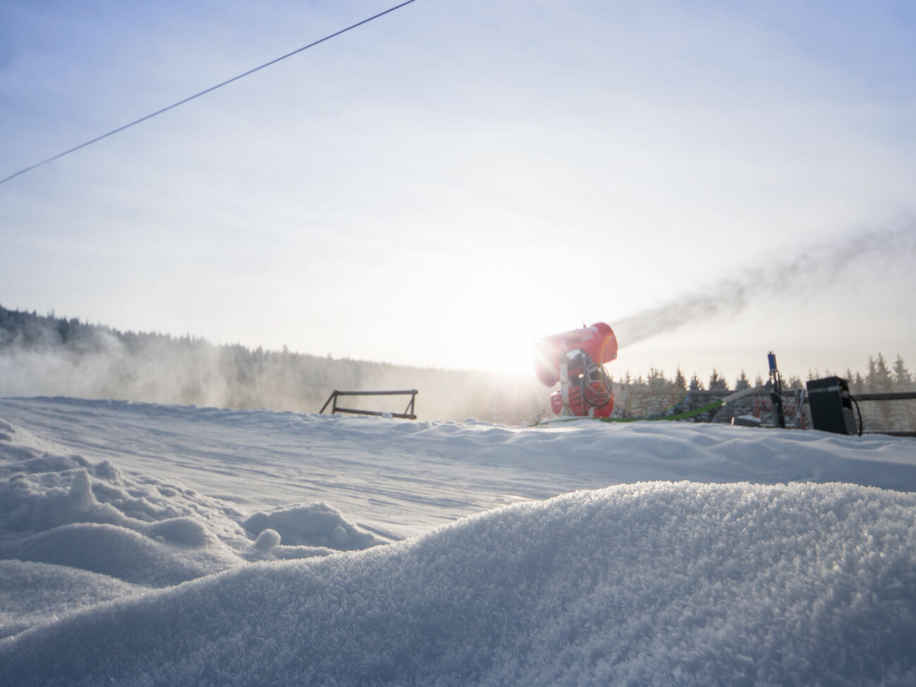 Seit 1986 sind bis zu 7 Schneekanonen im Einsatz. 2012 wurden 3 weitere Propeller-Schneeerzeuger und 2 Lanzen angeschafft. Die bei entsprechenden Außentemperaturen bzw. Luftfeuchtigkeit insgesamt bis zu ca. 100 m³ Wasser pro Stunde zu Schnee verblasen. Mit zwei Pistenbullys (PB 300 und PB 300 W Kässbohrer) bearbeiten wir Nachts die Abfahrtspisten um diese in einem optimalen Zustand zu halten. Unsere Schnee-Erzeugung erfolgt auf natürlicher Basis, ähnlich wie in der Natur, ohne chemische bzw. sonstige Zusätze.